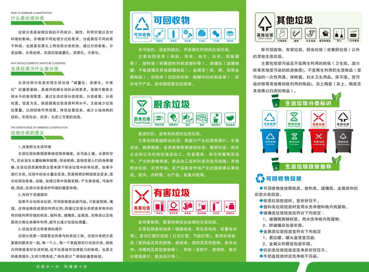 三、实施垃圾分类。做垃圾分类的践行者,带头实施垃圾分类投放; 做限塑行动的参与者,不用不可降解的一次性塑料制品;做节约资源的倡导者,抵制过度包装,促进资源循环利用。