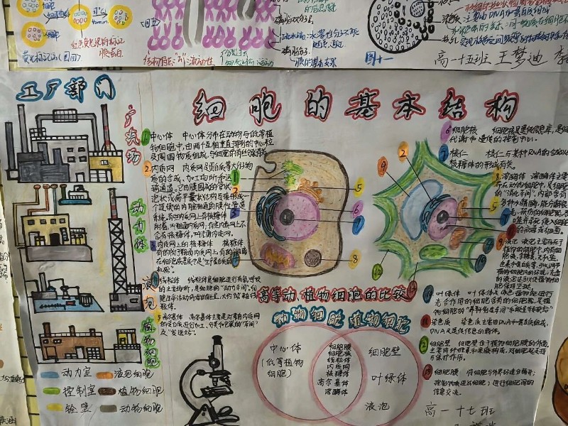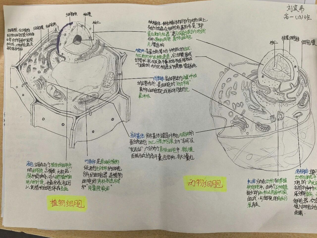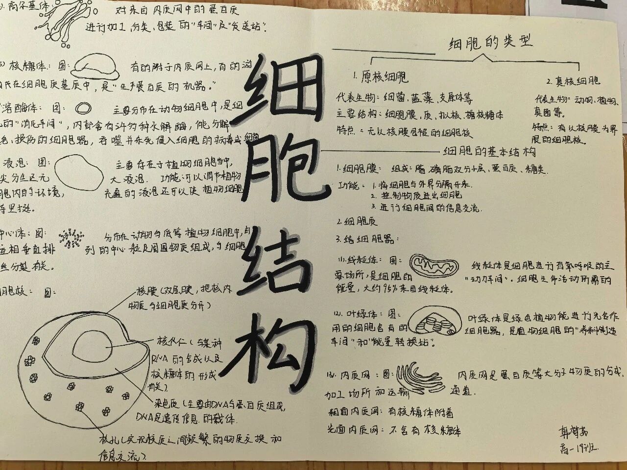 自活动启动以来,高一年级全体学子踊跃响应,共提交原创作品553份。从构思框架到落笔绘图,从标注结构到诠释功能,同学们全程投入:有的利用课余时间查阅资料,确保每个结构名称精准无误;有的和同学反复探讨逻辑脉络,让“细胞膜-细胞质-细胞核”的关联更清晰;还有的精心搭配色彩、设计图标,让严谨的科学知识多了几分灵动美感。各班生物教师跟进指导,从科学性把关到创意性提升,为同学们的创作保驾护航,最终让一批高质量作品脱颖而出。