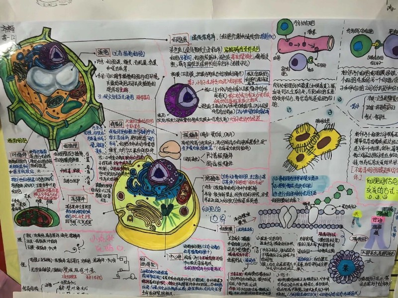 本次竞赛作品可谓“百花齐放”,评审小组一致感叹同学们的创造力远超预期。从作品呈现来看,既有遵循“总-分”逻辑、层次分明的规范型思维导图,将细胞各结构的功能与联系梳理得一目了然,完美契合科学性与逻辑性的核心要求;也有充满巧思的创意型作品——有同学以“细胞工厂”为主题,将线粒体比作“动力车间”、核糖体化作“生产流水线”,用一张张图画将抽象知识具象化;还有同学融入手绘插画,给细胞器配上可爱卡通形象,在标注“叶绿体进行光合作用”的同时,画出阳光与叶片的联动场景,实现了知识与美学的巧妙融合。这些作品不仅是知识的载体,更是同学们思维与创意的鲜活展现。