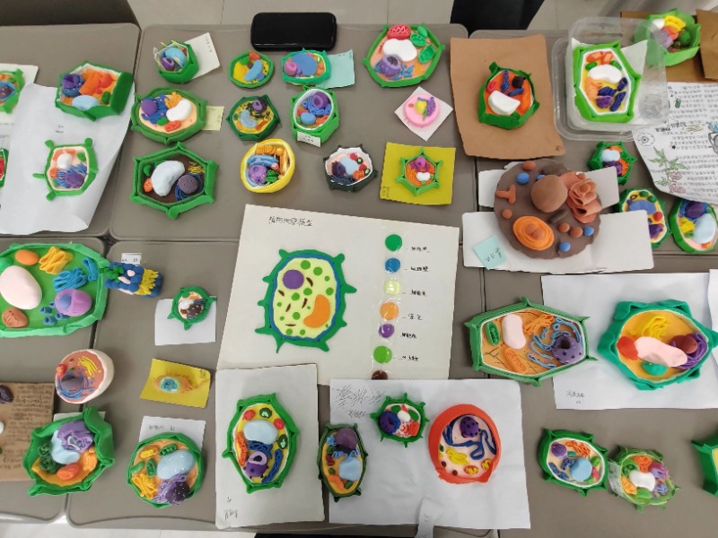 赛事启动后,高一学子热情高涨,积极参与。课堂上,他们认真梳理细胞各结构的特点与功能,课余时间,更是发挥创意,用生活中常见的材料打造生物模型。有的用黏土塑造细胞核与细胞器,用透明塑料膜模拟生物膜;有的用太空泥塑造磷脂双分子层,用泡沫材料打造膜蛋白还原细胞膜的流动镶嵌模型;有的用不织布打造植物细胞模型,不同细胞器用不同颜色的不织布代表,细节满满;还有同学创新性使用3D打印技术制作生物模型。制作过程中,不少学生主动与生物老师交流,确认结构比例与功能对应关系,在实践中深化了对知识的理解。